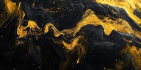 Abstract Fluid Gold: A Dynamic Composition of Swirling Black and Golden Hues Intertwine, Evoking a Sense of Luxury and Opulence