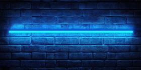 Neon Glow on Brick: A Vibrant Blue Neon Sign, Mounted Against a Rustic Brick Wall, Casts a Luminous Glow, Creating a Striking Contrast of Textures and Tones