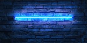 Neon Glow on Brick: A Vibrant Blue Neon Sign, Mounted Against a Rustic Brick Wall, Casts a Luminous Glow, Creating a Striking Contrast of Textures and Tones