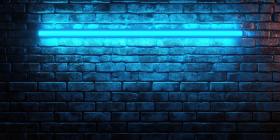 Neon Glow on Brick: A Vibrant Blue Neon Sign, Mounted Against a Rustic Brick Wall, Casts a Luminous Glow, Creating a Striking Contrast of Textures and Tones