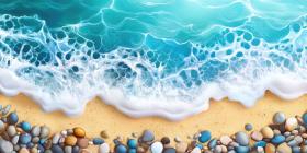 A Tapestry of the Shore: A Bird-Eye View Captures the Dynamic Interplay of Turquoise Waves, Foamy Surf, and a Collection of Smooth, Colorful Pebbles along a Sandy Beach