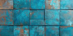 Patina of Time: A Wall of Square Tiles, Tinted with Shades of Blue and Rust, Evokes a Sense of Aged Beauty and Industrial Elegance