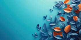 A Floral Symphony: Delicate Blossoms in Hues of Blue, Orange, and White Dance Against a Vibrant Turquoise Sky, Capturing the Essence of Spring's Ethereal Beauty
