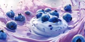A Blueberry Symphony: Juicy Berries Splash into a Creamy Pool of Yogurt, Creating a Whirlwind of Flavor and a Symphony of Textures