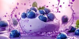 A Blueberry Symphony: Juicy Berries Splash into a Creamy Pool of Yogurt, Creating a Whirlwind of Flavor and a Symphony of Textures