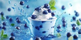 A Blueberry Symphony: Juicy Berries Splash into a Creamy Pool of Yogurt, Creating a Whirlwind of Flavor and a Symphony of Textures