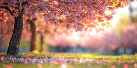 A Sunlit Meadow: Sunlight filters through the leaves of a majestic tree, illuminating a vibrant carpet of wildflowers in a picturesque meadow