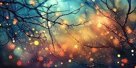 A Wintery Glow: Twinkling Lights Illuminate Bare Branches Against a Twilight Sky, Casting a Magical Spell and Evoking the Spirit of the Festive Season