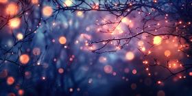 A Wintery Glow: Twinkling Lights Illuminate Bare Branches Against a Twilight Sky, Casting a Magical Spell and Evoking the Spirit of the Festive Season