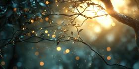 A Wintery Glow: Twinkling Lights Illuminate Bare Branches Against a Twilight Sky, Casting a Magical Spell and Evoking the Spirit of the Festive Season