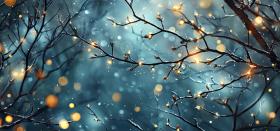 A Wintery Glow: Twinkling Lights Illuminate Bare Branches Against a Twilight Sky, Casting a Magical Spell and Evoking the Spirit of the Festive Season