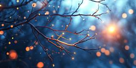 A Wintery Glow: Twinkling Lights Illuminate Bare Branches Against a Twilight Sky, Casting a Magical Spell and Evoking the Spirit of the Festive Season