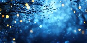 A Wintery Glow: Twinkling Lights Illuminate Bare Branches Against a Twilight Sky, Casting a Magical Spell and Evoking the Spirit of the Festive Season
