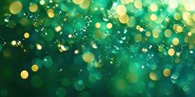 A Symphony of Light and Dew: A mesmerizing interplay of golden bokeh and glistening water droplets creates a vibrant, abstract composition on a verdant green backdrop