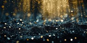 A Sea of Stardust: A mesmerizing abstract landscape of undulating black, speckled with shimmering gold, evokes a sense of celestial wonder and cosmic luxury