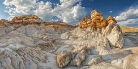 A Tapestry of Time: The White Pocket, a masterpiece sculpted by wind and water, reveals layers of vibrant hues and intricate formations, a testament to the earth's enduring beauty
