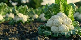 A Field of Ivory: A vast expanse of cauliflower heads, glistening under a dramatic sunset sky, forms a mesmerizing landscape of nature's bounty