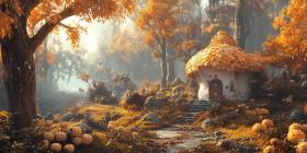 A Vast Expanse Under a Sky of Dreams: A golden grassland stretches towards a majestic mountain range, bathed in the warm light of a setting sun, creating a breathtaking panorama of nature grandeur