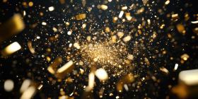 A Golden Shower of Celebration: Confetti bursts forth in a dazzling explosion of color and light, capturing the joyous energy and excitement of a momentous occasion