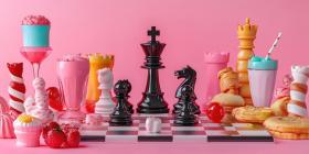 A Sweet Strategy: A whimsical chessboard, adorned with delectable treats and playful colors, invites a game of strategy and indulgence
