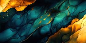 Abstract Ink Art: A Symphony of Blues and Golds