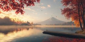 Serene Autumn Sunset Over Misty Mountain Peaks
