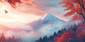 Serene Autumn Sunset Over Misty Mountain Peaks