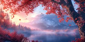 Serene Autumn Sunset Over Misty Mountain Peaks