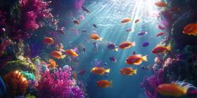 Sunbeams Illuminate a Vibrant Coral Reef Ecosystem