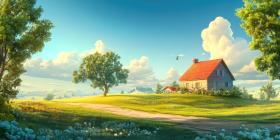 A Sunny Daydream: A Rustic Cottage Nestled in a Verdant Meadow