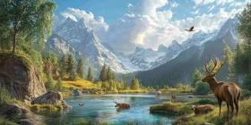 Serene Tranquility: A Deer Watches Over a Misty Dawn