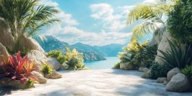 A Verdant Paradise: A Lush Garden Beckons Under a Summer Sky