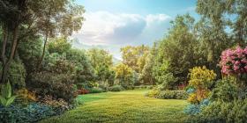 A Verdant Paradise: A Lush Garden Beckons Under a Summer Sky