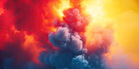 A fiery dance: A vibrant abstract art of swirling red and yellow ink