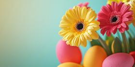 Springtime Symphony: A Colorful Easter Egg Arrangement with a Delicate Pink Gerbera Daisy