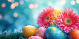 A Springtime Symphony: A Colorful Easter Egg Arrangement with a Delicate Pink Gerbera Daisy