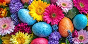 A Springtime Symphony: A Colorful Easter Egg Arrangement with a Delicate Pink Gerbera Daisy