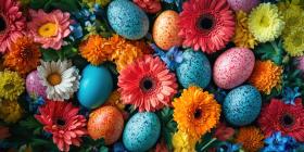 A Springtime Symphony: A Colorful Easter Egg Arrangement with a Delicate Pink Gerbera Daisy