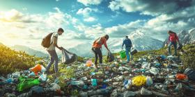 Volunteers Cleaning Up Plastic Waste in Scenic Mountain Area