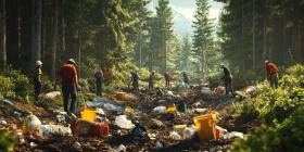 Volunteers Cleaning Up Plastic Waste in Scenic Mountain Area