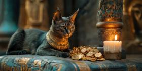 Guardian of the Treasures: A Regal Cat in an Ancient Setting