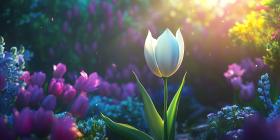 A Sunlit Serenade: A Delicate White Tulip Basking in the Warmth of a Spring Morning