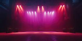 Spotlight on Stage: A Dramatic Scene Illuminated by Crimson Beams