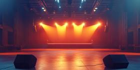 Spotlight on Stage: A Dramatic Scene Illuminated by Crimson Beams