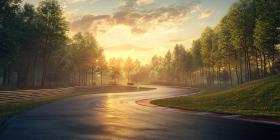 A Sunset Serenade: A Race Track Beckons Under a Vibrant Sky