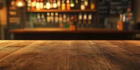 Rustic Retreat: A Wooden Tabletop in a Cozy Bar Setting