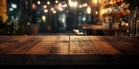 Rustic Retreat: A Wooden Tabletop in a Cozy Bar Setting