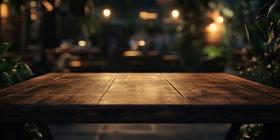 Twilight Ambiance: A Rustic Wooden Table Under a Canopy of Lights