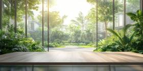 A Verdant Outlook: A Wooden Deck Overlooking a Lush Tropical Garden