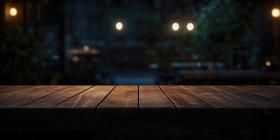 Twilight Ambiance: A Rustic Wooden Table Under a Canopy of Lights